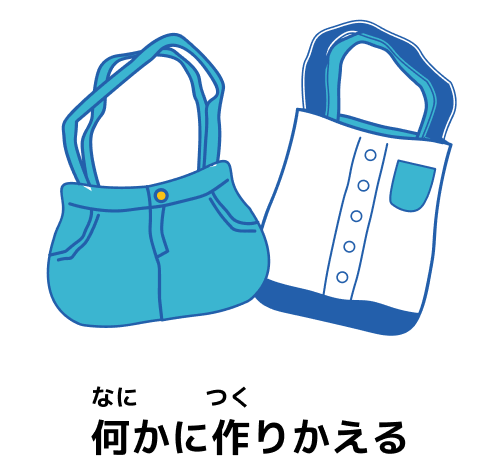 - • おうちには、もう着られないけど、そのまましまっている衣類はあるかな?考えてみよう!