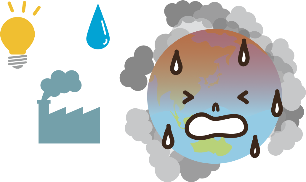 地球を汚すCO₂(温室効果ガス)を出してしまうんだ。